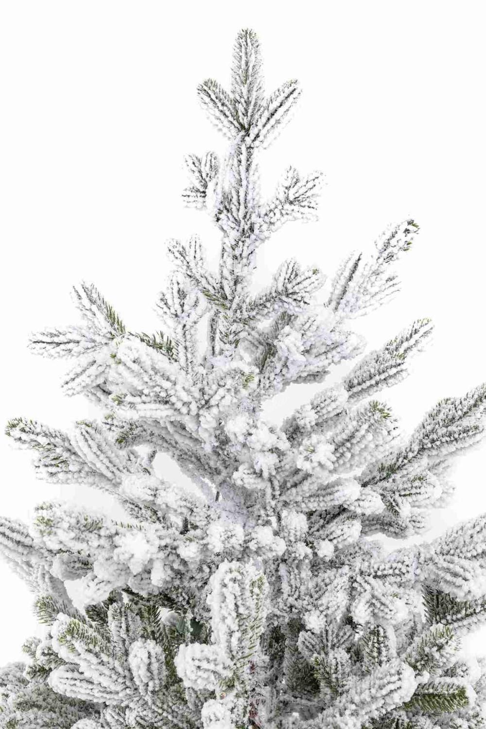Die dichten Zweige dieses Baums bestehen aus detaillierten 3D-Nadeln, die gleichmäßig mit einer Schicht aus Kunstschnee bedeckt sind und einen wunderschönen Wintereffekt erzeugen.