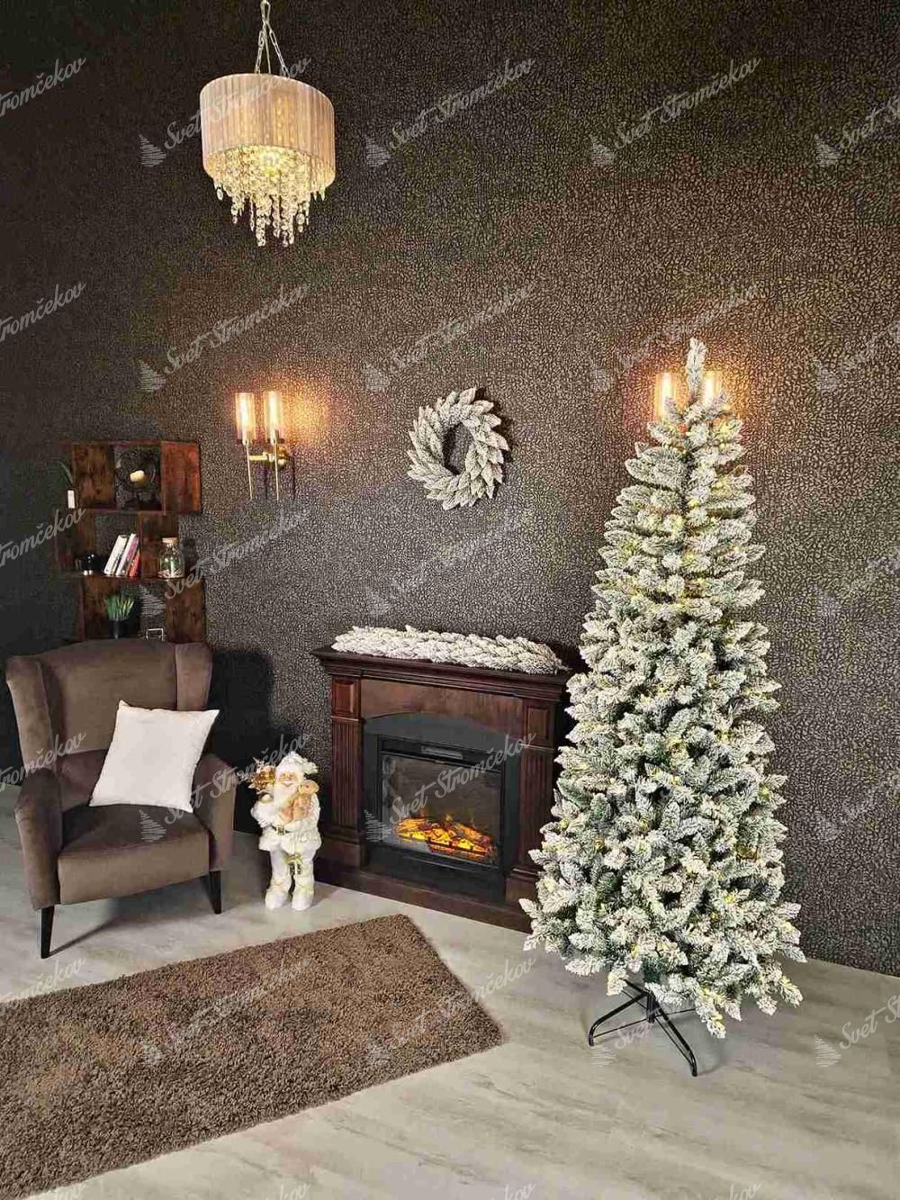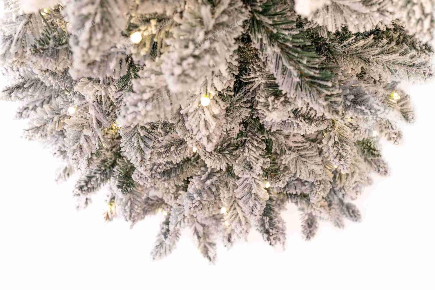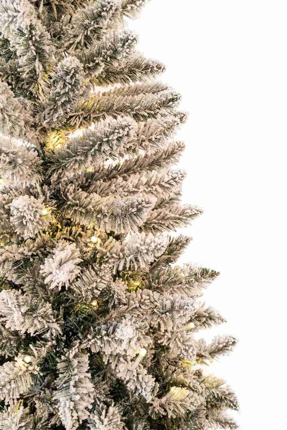 Der LED-Weihnachtsbaum Weiß-Fichte Schlank ist eine Neuigkeit für die Saison 2024 und besticht durch seine dicht verschneiten Fichtenzweige und das praktische schmale Design. Das moderne verschneite Aussehen entsteht durch die dicke Schicht Kunstschnee, die sehr realistisch aussieht und Eleganz und ein bisschen frostige nordische Atmosphäre ins Haus bringt.