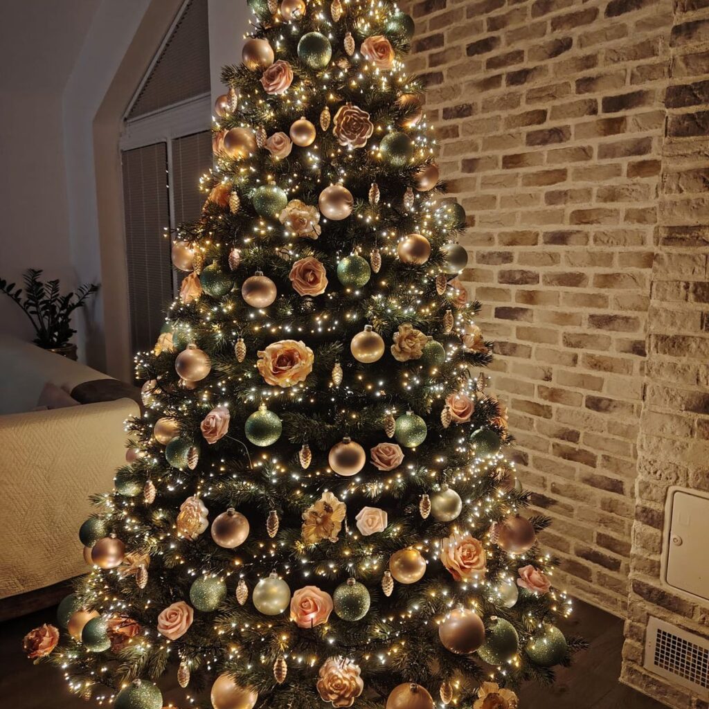 - der Baum wird in der Mitte durch klassische grüne PVC-Zweige ergänzt – für ein dichtes Erscheinungsbild