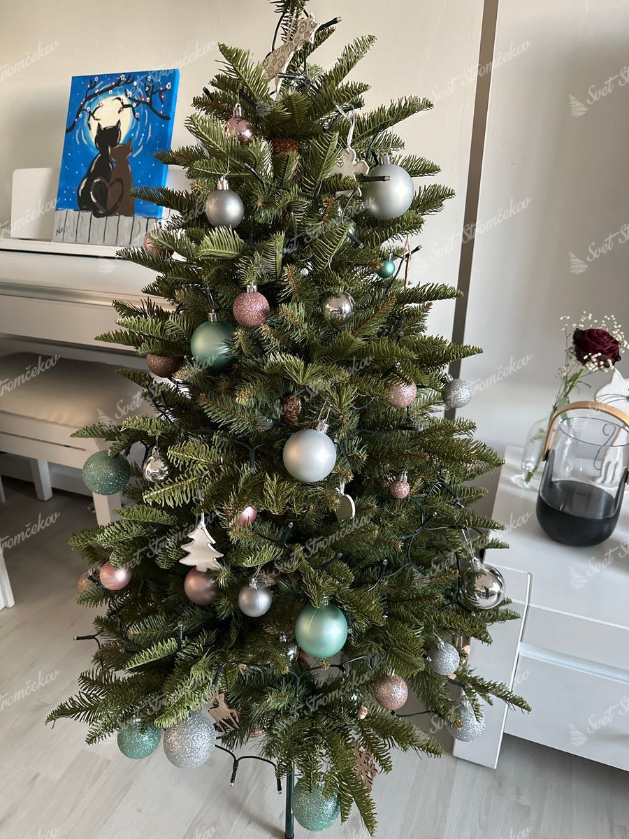 Künstlicher Weihnachtsbaum 3D Kaukasus-Tanne, diese wunderschöne Tannenart zeichnen ihre speziellen Tannennadeln in blassgrüner Farbe aus. Die 3D-Zweige werden in der Mitte des Baumes durch klassische PVC-Zweige ergänzt, wodurch der Baum dichter wirkt.