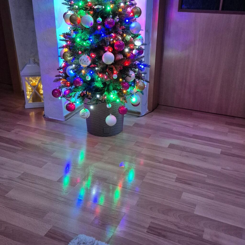 Der Baum steht in einem stilvollen Topf und imitiert so einen echten, verpflanzten Baum. Der Weihnachtsbaum im Topf ist sehr beliebt und für jeden Haushalt geeignet.