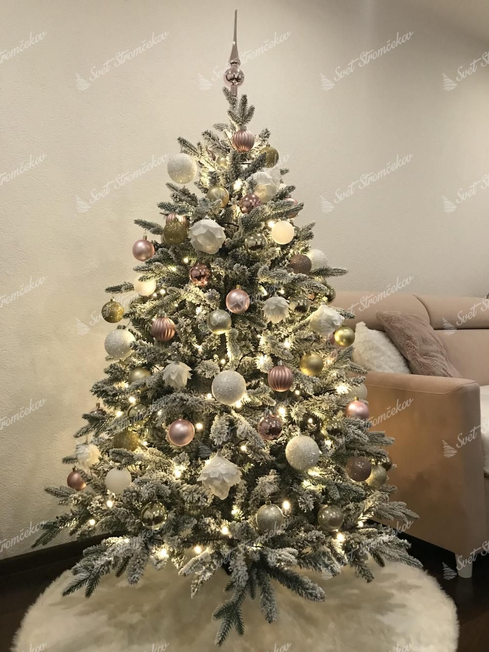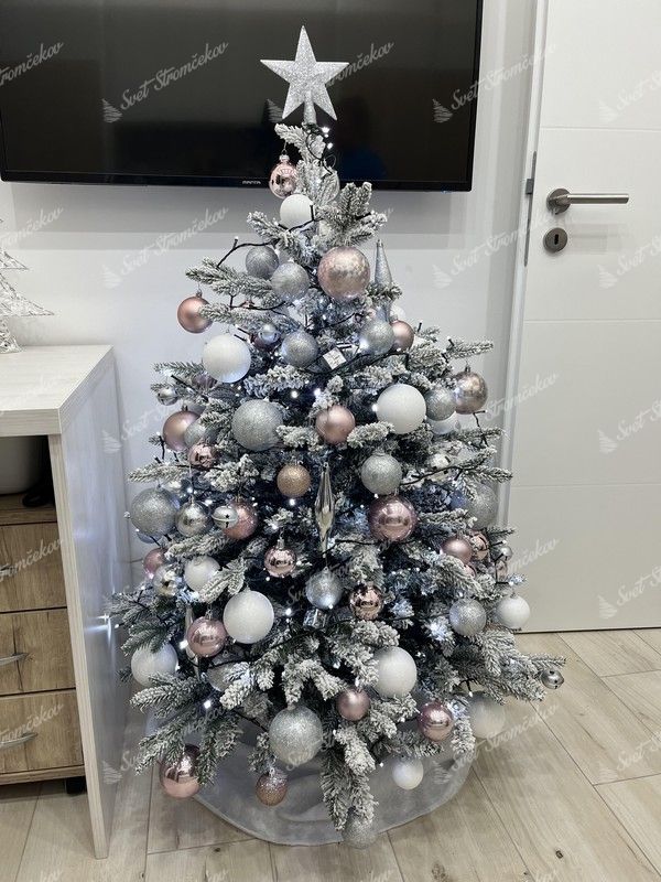 Die 3D-Nadeln um den gesamten Umfang des Baumes werden durch klassische PVC-Nadeln ergänzt, die dicht beschneit sind. Die moderne Applikation von Kunstschnee auf den Baum garantiert, dass der künstliche Schnee nicht abfällt.