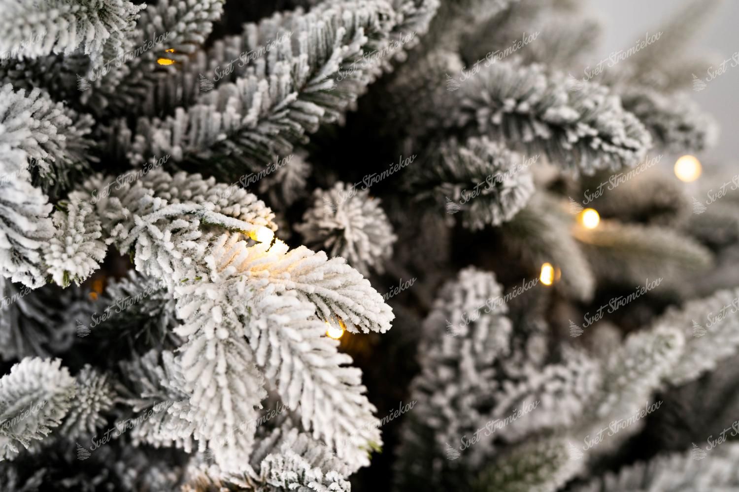 Die 3D-Zweige werden durch klassische PVC-Zweige, die mit Kunstschnee beschneit sind, ergänzt, wodurch der Baum dichter wirkt. Das neueste Anwendungssystem garantiert, dass kein Kunstschnee von den Bäumen fällt. Der Baum besteht aus einer festen, stabilen Eisenkonstruktion und wird mit einem Metallständer geliefert. Für die perfekte Form des Baumes sorgt ein Regenschirm-Faltsystem, das die einzelnen Zweige an eine vorbestimmte Stelle platziert.