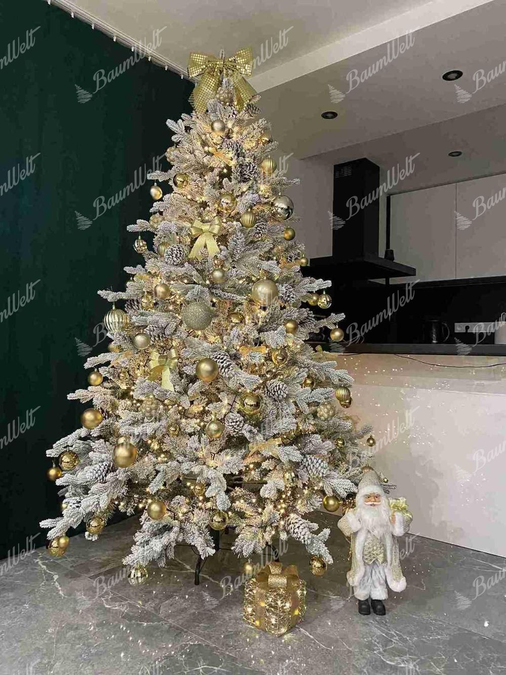 Mit Hilfe modernster Technik wird der gesamte Baum nach und nach mit Kunstschnee überzogen, der kaum vom Baum fällt. Beim ersten Zersetzen der Zweige werden die nicht eingeschlossenen Schneebestandteile wieder freigesetzt. Das ursprüngliche Aussehen wird auch durch die dicht mit Schnee bedeckten Zapfen erreicht, die auf den Baum gelegt werde