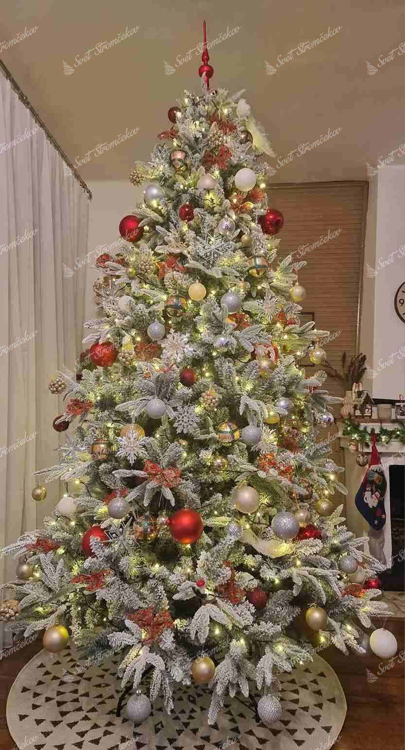 Weißer Weihnachtsbaum, Höhe 240 cm, Breite 144 cm, Nadeltyp – verschneite 3D-Nadeln + PVC, Design – dicht, Spitzenlänge 20 cm, Metallständer, Anzahl der Teile – 2