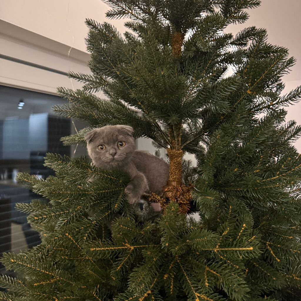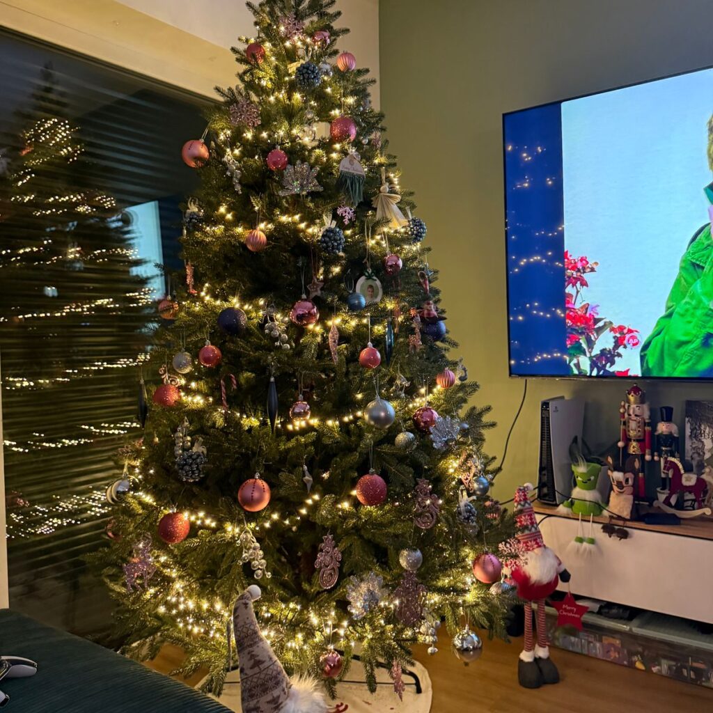 Gyönyörű szép, sűrű. Csak nagyon közelről lehet megállapítani, hogy nem valódi fenyő. Jó választás volt.