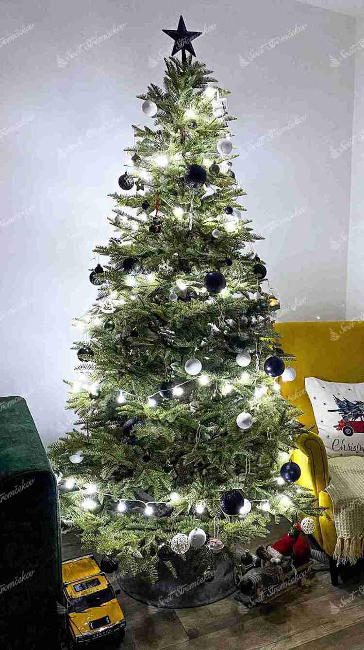 Künstlicher Weihnachtsbaum FULL 3D Kaukasus-Tanne besteht aus einer Vielzahl von unverwechselbaren 3D-Tannenzweigen und wirkt dadurch sehr realistisch. Die Nadeln des Baumes sind blassgrün und zeichnen sich durch die traditionelle Tannenform aus.