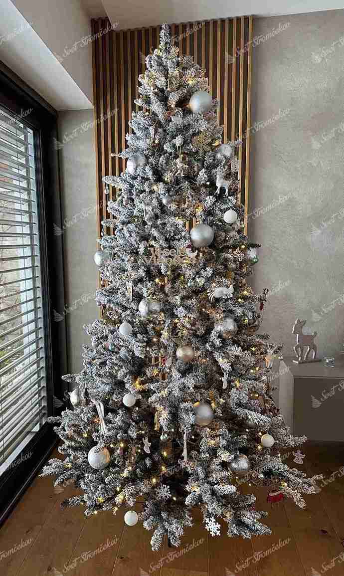 Mit Hilfe neuester Technologien werden nach und nach Kunstschneeschichten auf den Baum aufgetragen, die beim Auseinanderfalten auch nicht vom Baum fallen. Die Mitte des Baumes besteht aus dunkelgrünen Nadeln, während die Enden der Zweige dicht beschneit sind.