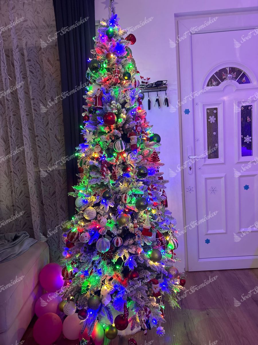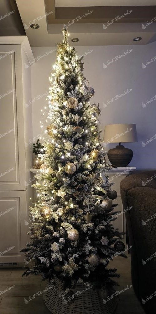 Seine weiß-grünlichen Zweige bezaubern wohl jeden, der sich nach einem eisig majestätischen Weihnachtsfest sehnt. Die 3D-Nadeln werden am gesamten Umfang des Baums durch klassische PVC-Nadeln ergänzt, die dicht zugeschneit sind. Das hochmoderne System zum Aufbringen des Kunstschnees auf den Baum sorgt dafür, dass der Schnee nicht herunterfällt.