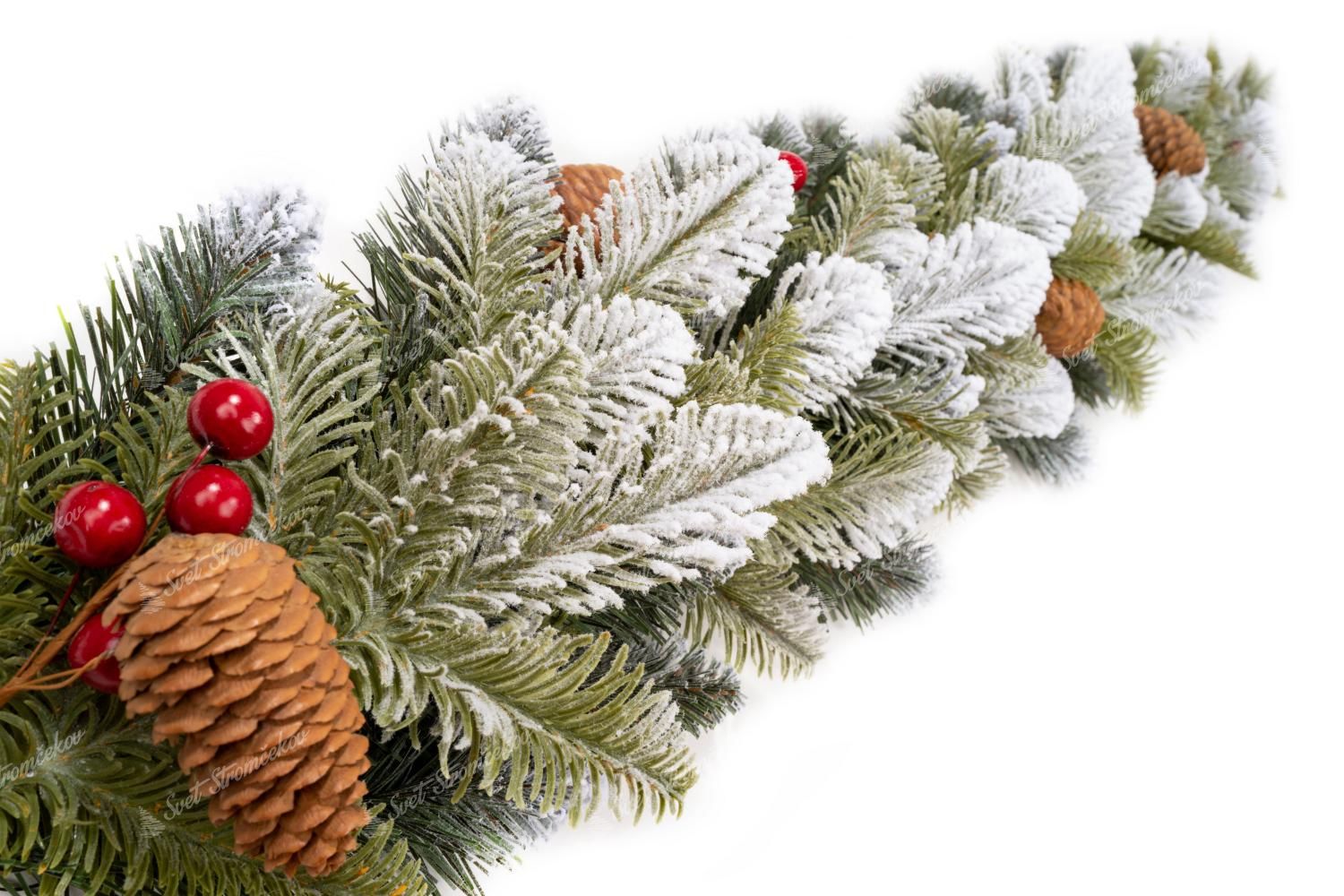 Schmücken Sie Ihr Zuhause mit der wunderschönen traditionellen Weihnachtsgirlande 3D-Tanne mit Kunstschnee, die von unserem gleichnamigen Weihnachtsbaum inspiriert wurde. Die gesamte Girlande besteht ausschließlich aus 3D-Zweigen, die an den Spitzen mit Kunstschnee bedeckt sind. Die 3D-Nadeln werden durch schneebedeckte Tannenzapfen und Waldfrüchte ergänzt, was diese Girlande wunderbar traditionell aussehen lässt.