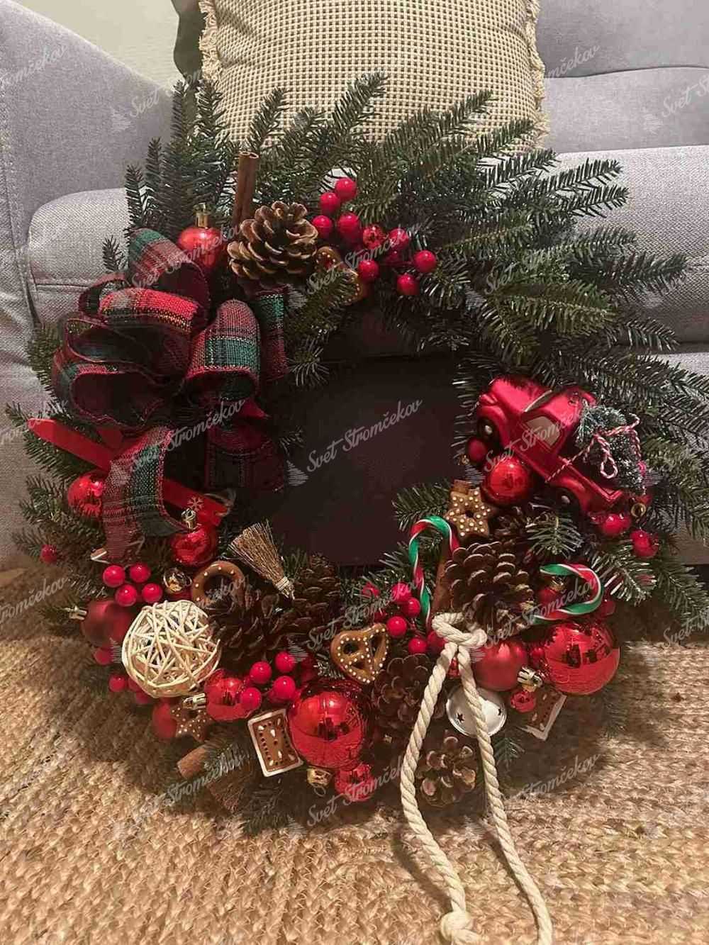 Der Kranz hat im entfalteten Zustand einen Durchmesser von 50 cm. Ein solcher Weihnachtskranz eignet sich als Dekoration für Tische, Türen und kann auch Ihre Wand oder Ihren Kamin verschönern.