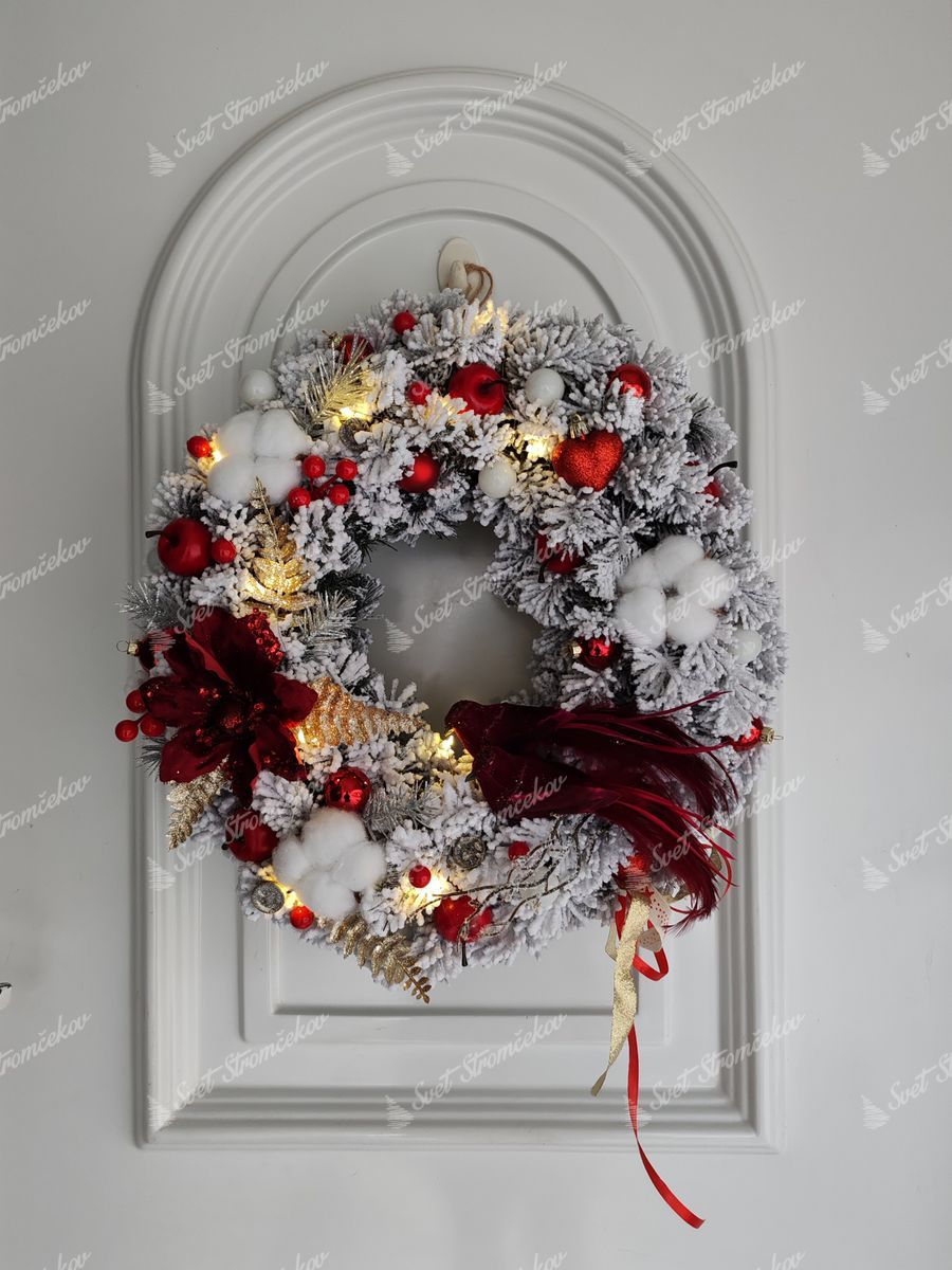 Der Kranz wird ungefaltet geliefert. Nach sorgfältigem Entfalten der Zweige erreicht er einen Durchmesser von 45 cm. Der Weihnachtskranz eignet sich als Dekoration für den Tisch, die Tür und kann auch Ihre Wand oder den Kamin verschönern.
