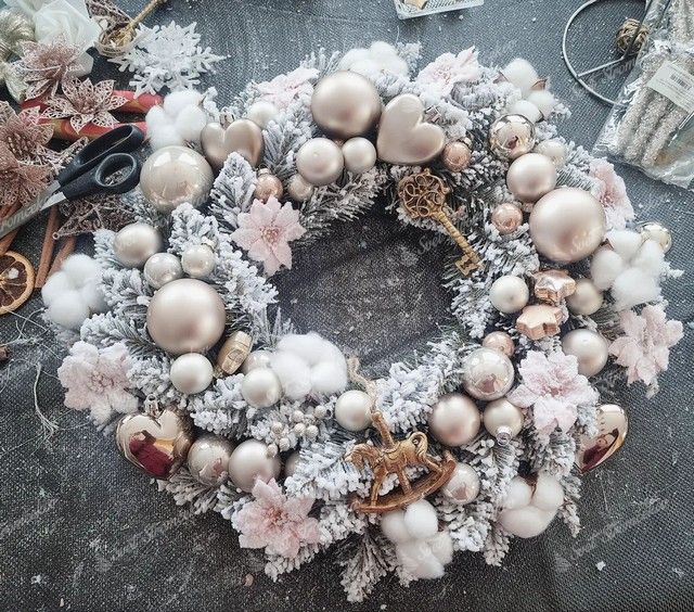 Der Weihnachtskranz hat einen Durchmesser von 50 cm und wird bereits zerlegt geliefert. Dieser weiße Weihnachtskranz eignet sich als Dekoration für einen Tisch, eine Tür und kann auch Ihre Wand oder Ihren Kamin verschönern.