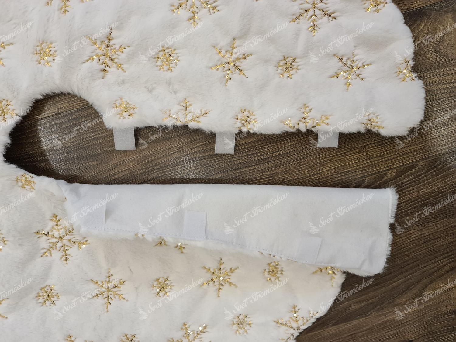 Der Weihnachtsbaumteppich hat eine runde Form und einen praktischen Klettverschluss. Er wird nicht nur Ihren Weihnachtsbaum luxuriös in Szene setzen, sondern deckt auch einen Kunststoff- oder Metallständer effektiv ab.